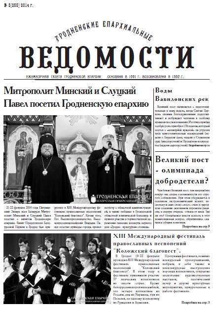 В Гродно 19-22 февраля проходил XIII Международный фестиваль православных песнопений "Коложский благовест". В этом году в фестивале принимали участие 37 певческих коллективов из шести стран. Кроме белорусских хоров и ансамблей, это четыре коллектива из России, два из Украины, три из Польши, по одному коллективу из Румынии и Армении.