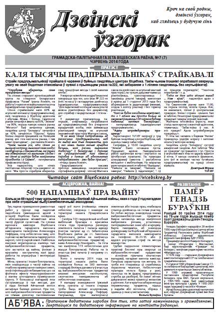 Старшыня Віцебскага райвыканкама Генадзь Сабыніч расказаў аб асаблівасцях цяперашняй гарачай пары. Дваццаць шосты год не перарываецца традыцыя ўдзелу Віцебскага раёна ў фестывалях-кірмашах працаўнікоў вёскі "Дажынкі" рэспубліканскага і абласнога ўзроўняў. Пастаянна з 1996 года аграрыі Прыдзвінскага краю станавіліся пераможцамі ў розных намінацыях маштабнага сельскагаспадарчага форуму. Апошніх некалькі гадоў раён утрымлівае лідэрства ў а... Болей »
