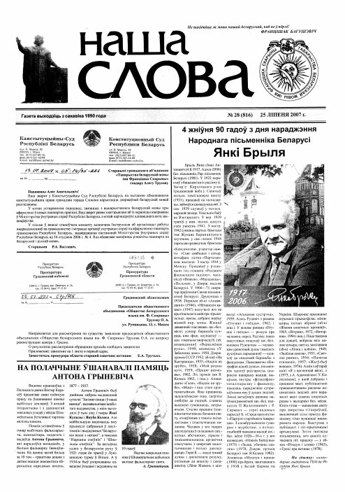У Вярхоўным Судзе Рэспублікі Беларусь на 8 лістапада 2021 г. прызначана судовае паседжанне па ліквідацыі нашай арганізацыі на падставе іскавой заявы Міністэрства юстыцыі. У іскавой заяве аб ліквідацыі Грамадскага аб'яднання "Таварыства беларускай мовы імя Францішка Скарыны" Міністэрства юстыцыі спасылаецца ў якасці фактычнай падставы для іска на тое, што ГА "Таварыства беларускай мовы імя Францішка Скарыны" не выканала патрабаванні, які... Болей »