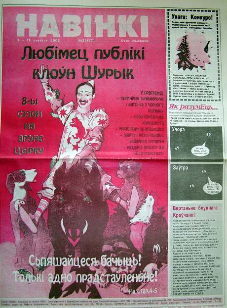 «Наві́нкі» — беларуская палітыка-сатырычная газэта. Заснаваная напачатку 1998 актывістамі анархічнай групоўкі «Чырвоны Жонд». Стылістыка — жорсткі трэшавы сьцёб з палітычных рэаліяў, кліпавы мантаж, палітычная карыкатура на грані непрыстойнасьці, максымальна ангажаваная падача навінаў, сатырычныя коміксы, палітычныя і культуралягічныя правакацыі. За правобраз газэты была ўзятая газэта «Навіны», назва і лягатып якой былі нязначна зьменен... Болей »