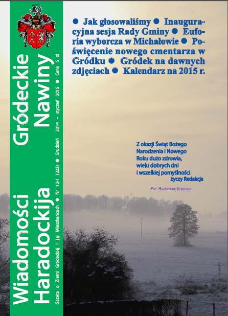 W naszych Wiadomościach Gródeckich każdy rok żegnamy i witamy nowym kalendarzem. To już dziewiąty lokalny gródecki kalendarz, który przygotowujemy razem z Radkiem. Mamy nadzieję, że z radością wieszacie go w swoich domach, patrzycie na zdjęcia, które są nam bliskie (tym razem z różnych miejscowości – Gródka, Zarzeczan, Podozieran, Świsłoczan, Mieleszek, Skroblak, Zubrów, Zubek, Radunina). Na okładce uczestnicy grudniowego Turnieju Piłka... Болей »