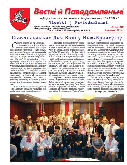 Сёлета сьвята 25-га Сакавіка – Дзень Волі й 97-я ўгодкі абвешчаньня незалежнасьці Беларускай Народнай Рэспублікі – было супольна адзначанае Беларуска-Амэрыканскім Задзіночаньнем (БАЗА) у Нью-Джэрзі й Беларуска-Амэрыканскім Згуртаваньнем “Пагоня” 29-га сакавіка ў Нью-Брансўіку, Нью-Джэрзі. У царкве сьв. Маці Божае Жыровіцкае Беларускай Аўтакефальнай Праваслаўнай Царквы ў Гайленд-Парку ля Нью-Брансўіка сьвятаром а. Зіновім была адпраўленая імша за Беларусь і беларускі народ. Сьвятар павіншаваў усіх беларусаў з нацыянальным сьвятам, і адзначыў, якую вялікую дапамогу аказваюць беларусы ў гэтыя цяжкія для Ўкраіны дні братам-украінцам