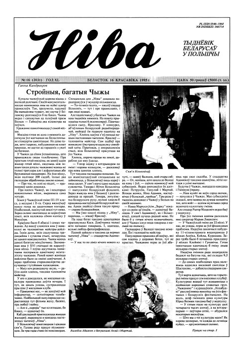 «Ніва» — штотыднёвая газета, якая выдаецца на беларускай мове ў Беластоку. Газета была заснавана ў 1956 Беларускім грамадска-культурным таварыствам. Зараз яе выдае Праграмная рада тыднёвіка «Ніва». Газета асвятляе штодзённае жыццё беларусаў у Польшчы, дзейнасць грамадскіх арганізацый, друкуе матэрыялы па краязнаўстве, змяшчае артыкулы, прысвечаныя актуальным падзеям на Беларусі. Болей »