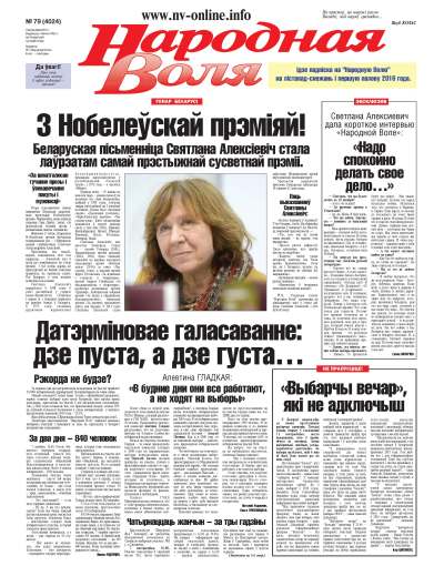 Прызнацца, мы чакалі, верылі, спадзяваліся, што гэта здарыцца, – Алексіевіч ужо ў трэці раз намінавалася на гэтую прэмію. І ўсё роўна навіна аб прысуджэнні яе нашай Святлане грымнула, як урачысты салют. Уся Беларусь у гэты момант асвяцілася па-новаму. Святлана Алексіевіч нарадзілася ў 1948 годзе ў сям’і настаўнікаў у горадзе Івана-Франкоўску (Украіна) і адразу ж з бацькамі пераехала на радзіму бацькі ў Беларусь. У 1972 годзе скончыла аддзяленне журналістыкі Белдзяржуніверсітэта, працавала карэспандэнтам у рэспубліканскай «Сельской газете», з 1976 года – у часопісе «Нёман».