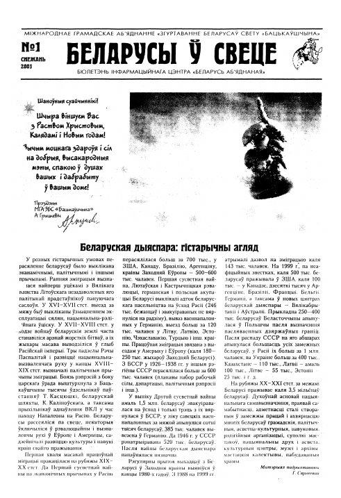 Выдавец: Міжнароднае Грамадскае Аб'яднанне Згуртаванне Беларусаў Свету Бацькаўшчына
