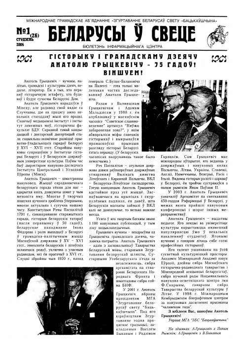 Выдавец: Міжнароднае Грамадскае Аб'яднанне Згуртаванне Беларусаў Свету Бацькаўшчына