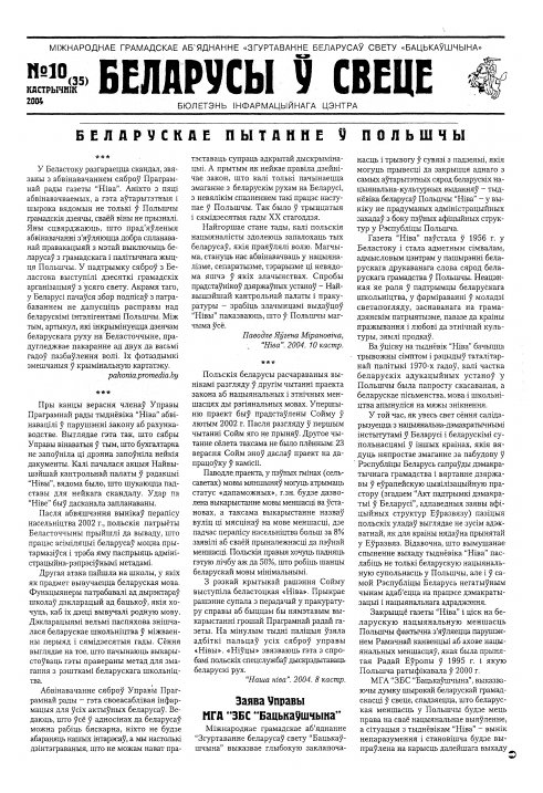 Выдавец: Міжнароднае Грамадскае Аб'яднанне Згуртаванне Беларусаў Свету Бацькаўшчына