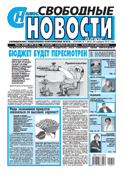 29 августа 2002 в Минске вышел первый номер нового еженедельника "Снплюс. Свободные новости плюс", зарегистрированного еще в прошлом году. Учредителем издания выступило ООО "Снплюс". Как сообщил главный редактор газеты Александр Улитенок, издание приобрело новый логотип, хотя сохранило формат "Свободных новостей" и их традиционные цвета - сине-голубой и черный. "Это новая газета старого коллектива, в 1991, 1992, 1994, 1997 и 2002 годах - менялись названия газеты. Но стратегия и тактика коллектива оставались прежними. И на этот раз все журналисты "Свободных новостей" работают в новом издании, - отметил А.Улитенок. - Нам было не до творческих изысков, вот почему в первом номере еженедельника публикуются материалы Валерия Карбалевича и Юрия Дракохруста, посвященные истории белорусско-российского конфликта. Кроме того, в газете представлены статьи о положении интеллигенции в нашем отечестве и ситуации в среде интеллектуалов. Перенесена в новое издание любимая читателями традиционная последняя полоса из "Свободных новостей", где описаны уникальные истории из жизни известных людей". Коснувшись тиража нового издания, его редактор сообщил, что смогли распространить только 8 тысяч экземпляров первого номера газеты в Минске, так как не успели подписать документы об экспедировании остального тиража по стране. "Учитывая, что нам не удалось за свой счет отправить подписчикам "Свободных новостей" первый номер нового издания, мы предлагаем нашим почитателям либо ждать разрешения конфликта между учредителями "Свободных новос