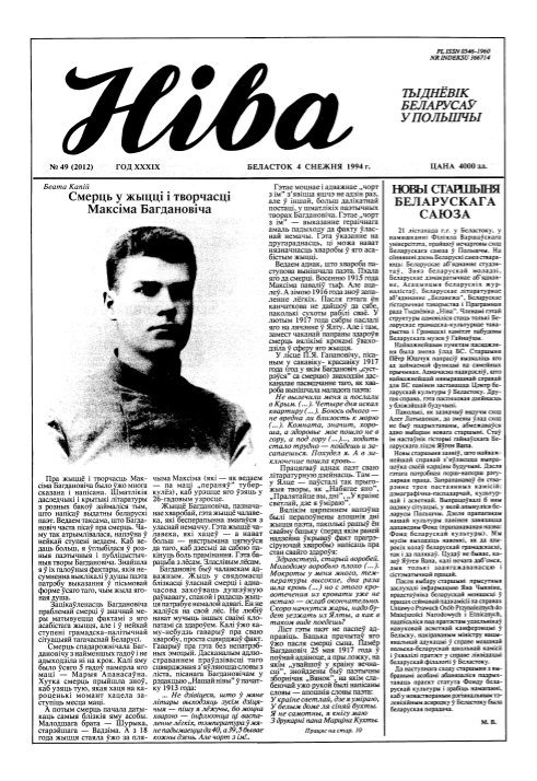 «Ніва» — штотыднёвая газета, якая выдаецца на беларускай мове ў Беластоку. Газета была заснавана ў 1956 Беларускім грамадска-культурным таварыствам. Зараз яе выдае Праграмная рада тыднёвіка «Ніва». Газета асвятляе штодзённае жыццё беларусаў у Польшчы, дзейнасць грамадскіх арганізацый, друкуе матэрыялы па краязнаўстве, змяшчае артыкулы, прысвечаныя актуальным падзеям на Беларусі. Болей »