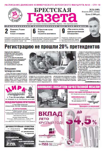 «Брестская газета» на региональном рынке СМИ позиционирует себя как одна газета для всей семьи. При выборе тематики публикуемых материалов мы руководствуемся принципом: ШИРОКИЙ ВЗГЛЯД, ВНИМАНИЕ К ДЕТАЛЯМ. При этом фундаментальной основой всех публикаций является: ОБЪЕКТИВНОСТЬ. Основными составляющими в содержательном плане являются местные новости, материалы социально-бытовой, экономической и правовой направленности. Болей »