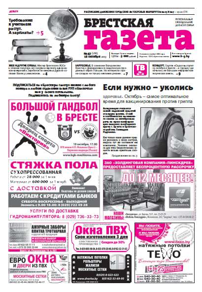 «Брестская газета» на региональном рынке СМИ позиционирует себя как одна газета для всей семьи. При выборе тематики публикуемых материалов мы руководствуемся принципом: ШИРОКИЙ ВЗГЛЯД, ВНИМАНИЕ К ДЕТАЛЯМ. При этом фундаментальной основой всех публикаций является: ОБЪЕКТИВНОСТЬ. Основными составляющими в содержательном плане являются местные новости, материалы социально-бытовой, экономической и правовой направленности. Болей »