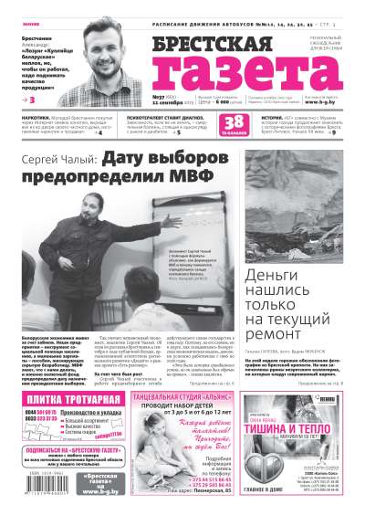 «Брестская газета» на региональном рынке СМИ позиционирует себя как одна газета для всей семьи. При выборе тематики публикуемых материалов мы руководствуемся принципом: ШИРОКИЙ ВЗГЛЯД, ВНИМАНИЕ К ДЕТАЛЯМ. При этом фундаментальной основой всех публикаций является: ОБЪЕКТИВНОСТЬ. Основными составляющими в содержательном плане являются местные новости, материалы социально-бытовой, экономической и правовой направленности. Болей »