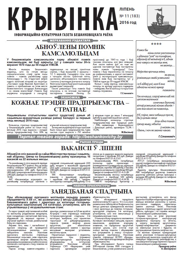 інфармацыйна-культурная газета Бешанковіцкага раёна