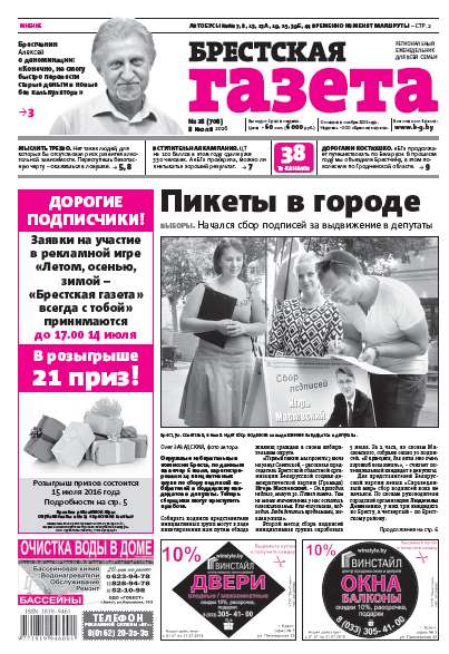 «Брестская газета» на региональном рынке СМИ позиционирует себя как одна газета для всей семьи. При выборе тематики публикуемых материалов мы руководствуемся принципом: ШИРОКИЙ ВЗГЛЯД, ВНИМАНИЕ К ДЕТАЛЯМ. При этом фундаментальной основой всех публикаций является: ОБЪЕКТИВНОСТЬ. Основными составляющими в содержательном плане являются местные новости, материалы социально-бытовой, экономической и правовой направленности. More »