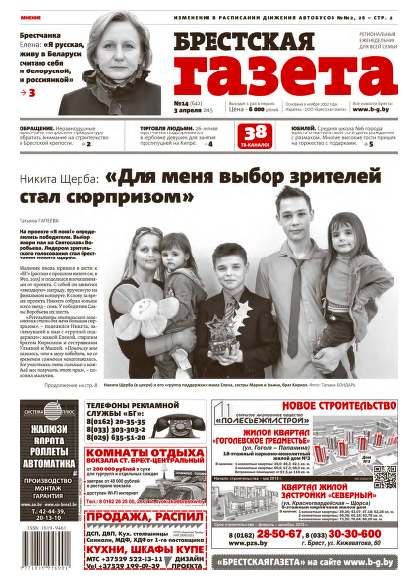 «Брестская газета» на региональном рынке СМИ позиционирует себя как одна газета для всей семьи. При выборе тематики публикуемых материалов мы руководствуемся принципом: ШИРОКИЙ ВЗГЛЯД, ВНИМАНИЕ К ДЕТАЛЯМ. При этом фундаментальной основой всех публикаций является: ОБЪЕКТИВНОСТЬ. Основными составляющими в содержательном плане являются местные новости, материалы социально-бытовой, экономической и правовой направленности. Болей »