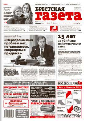 «Брестская газета» на региональном рынке СМИ позиционирует себя как одна газета для всей семьи. При выборе тематики публикуемых материалов мы руководствуемся принципом: ШИРОКИЙ ВЗГЛЯД, ВНИМАНИЕ К ДЕТАЛЯМ. При этом фундаментальной основой всех публикаций является: ОБЪЕКТИВНОСТЬ. Основными составляющими в содержательном плане являются местные новости, материалы социально-бытовой, экономической и правовой направленности. Болей »