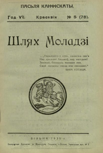Шлях Моладзі (1929 — верасень 1939) — моладзевы грамадзка-палітычны і літаратурна-мастацкі часопіс нацыянал-дэмакратычнага кірунку ў Заходняй Беларусі. Выдаваўся ў Вільні на беларускай мове (лацінкай і кірыліцай). Друкаваўся ў Беларускай Друкарні імя Франьцішка Скарыны, выдавецтве «Белпрэс». Рэдактары ў розныя гады: Мар’ян Пецюкевіч, Язэп Найдзюк, Янка Шутовіч. Выдавец Янка Багдановіч. У склад рэдкалегіі ўваходзілі Ізабэля Тумаш, Альфон... More »