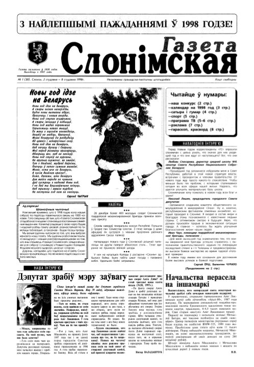 «Газета Слонімская» (скарочана «ГС», польск. Gazeta Słonimska) — беларуская штотыднёвая грамадска-палітычная газета, якая выходзіць у Слоніме. Упершыню выйшла ў 1938 годзе на польскай мове (ўсяго выйшла 4 нумары). «Газета Слонімская» была адноўленая ў 1997 годзе як незалежнае грамадска-палітычнае выданне на рускай і беларускай мовах. Яе заснавальнікам і галоўным рэдактарам стаў Віктар Валадашчук. Першы нумар адроджанай «Газеты Слонімска... Болей »