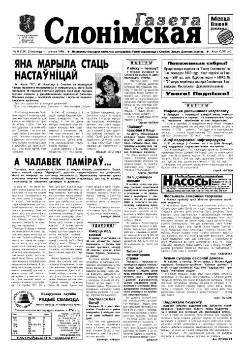 «Газета Слонімская» (скарочана «ГС», польск. Gazeta Słonimska) — беларуская штотыднёвая грамадска-палітычная газета, якая выходзіць у Слоніме. Упершыню выйшла ў 1938 годзе на польскай мове (ўсяго выйшла 4 нумары). «Газета Слонімская» была адноўленая ў 1997 годзе як незалежнае грамадска-палітычнае выданне на рускай і беларускай мовах. Яе заснавальнікам і галоўным рэдактарам стаў Віктар Валадашчук. Першы нумар адроджанай «Газеты Слонімска... Болей »
