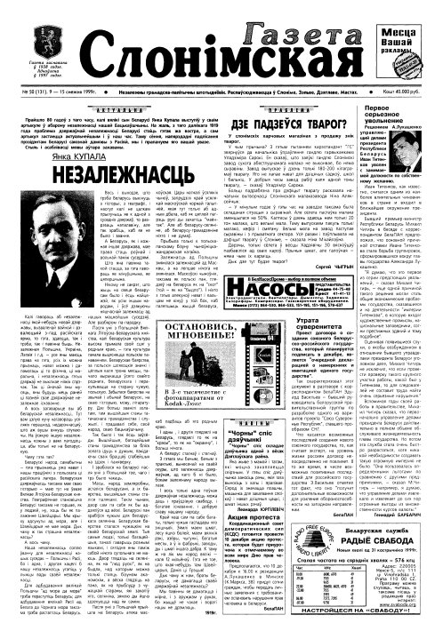 «Газета Слонімская» (скарочана «ГС», польск. Gazeta Słonimska) — беларуская штотыднёвая грамадска-палітычная газета, якая выходзіць у Слоніме. Упершыню выйшла ў 1938 годзе на польскай мове (ўсяго выйшла 4 нумары). «Газета Слонімская» была адноўленая ў 1997 годзе як незалежнае грамадска-палітычнае выданне на рускай і беларускай мовах. Яе заснавальнікам і галоўным рэдактарам стаў Віктар Валадашчук. Першы нумар адроджанай «Газеты Слонімска... Болей »