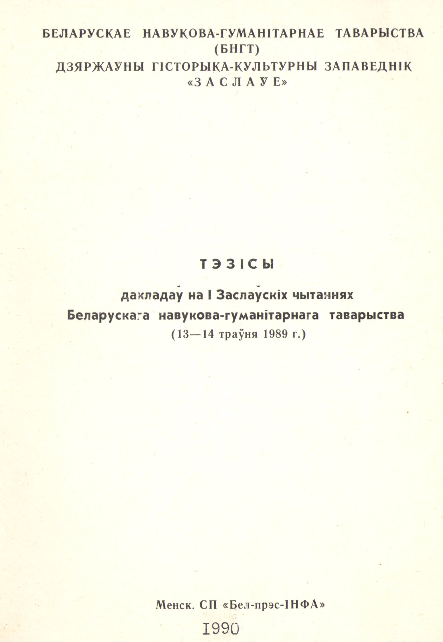 Выдавец: Беларускае навукова-гуманітарнае таварыства, Дзяржаўны гісторыка-культурны запаведнік "Заслаўе"