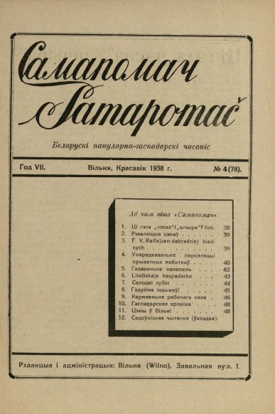 «Самапомач», кааператыўна-гаспадарчы часопіс. Выдаваўся ў кастрычніку 1932 — чэрвені 1939 у Вільні на беларускай мове. Рэдакгар А. Клімовіч. Увага ўдзялялася вопыту і ўзорам кааператыўнай працы, даваліся практычныя парады па арганізацыі кааператыўнай дзейнасці, гучаў заклік да грамадскай салідарнасці. Часопіс друкаваў матэрыялы з розных рэгіёнаў Заходняй Беларусі, у якіх удзельнікі кааператыўнага руху дзяліліся здабыткамі сваіх арганіза... Болей »