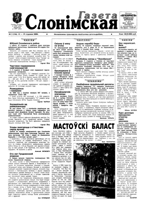 «Газета Слонімская» (скарочана «ГС», польск. Gazeta Słonimska) — беларуская штотыднёвая грамадска-палітычная газета, якая выходзіць у Слоніме. Упершыню выйшла ў 1938 годзе на польскай мове (ўсяго выйшла 4 нумары). «Газета Слонімская» была адноўленая ў 1997 годзе як незалежнае грамадска-палітычнае выданне на рускай і беларускай мовах. Яе заснавальнікам і галоўным рэдактарам стаў Віктар Валадашчук. Першы нумар адроджанай «Газеты Слонімска... Болей »