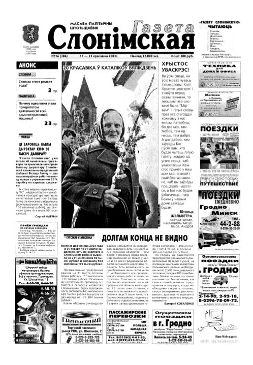«Газета Слонімская» (скарочана «ГС», польск. Gazeta Słonimska) — беларуская штотыднёвая грамадска-палітычная газета, якая выходзіць у Слоніме. Упершыню выйшла ў 1938 годзе на польскай мове (ўсяго выйшла 4 нумары). «Газета Слонімская» была адноўленая ў 1997 годзе як незалежнае грамадска-палітычнае выданне на рускай і беларускай мовах. Яе заснавальнікам і галоўным рэдактарам стаў Віктар Валадашчук. Першы нумар адроджанай «Газеты Слонімска... Болей »