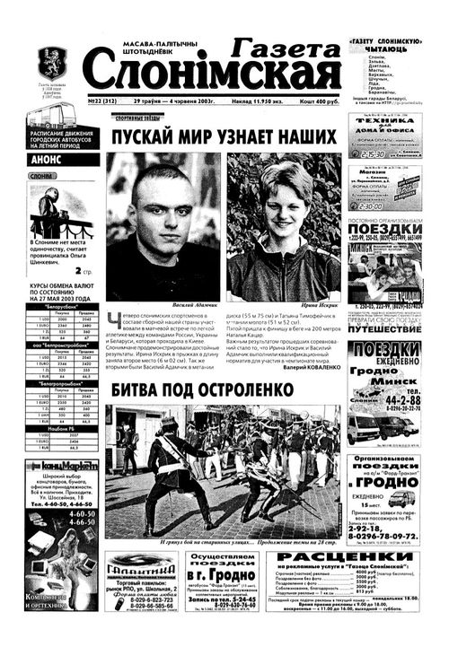 «Газета Слонімская» (скарочана «ГС», польск. Gazeta Słonimska) — беларуская штотыднёвая грамадска-палітычная газета, якая выходзіць у Слоніме. Упершыню выйшла ў 1938 годзе на польскай мове (ўсяго выйшла 4 нумары). «Газета Слонімская» была адноўленая ў 1997 годзе як незалежнае грамадска-палітычнае выданне на рускай і беларускай мовах. Яе заснавальнікам і галоўным рэдактарам стаў Віктар Валадашчук. Першы нумар адроджанай «Газеты Слонімска... Болей »