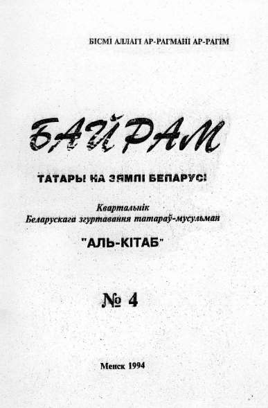 Квартальнік «Байрам» - выходзіць з 1991 года. У ім змяшчаецца інфармацыя аб жыцці і дзейнасці мусульманскіх абшчын на Беларусі, аб асновах Іслама і правах у мусульманскіх краінах. Выходзіць чатыры раза на год. Разлічаны на мусульман Беларусі, навукоўцаў, усіх, хто цікавіцца гісторыяй, культурай, мусульманскай рэлігіяй беларускіх татараў. Квартальнік - гэта першае перыядычнае выданне беларускіх татараў за болей чым 600-гадовую гісторыю п... More »
