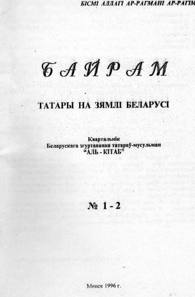 Квартальнік «Байрам» - выходзіць з 1991 года. У ім змяшчаецца інфармацыя аб жыцці і дзейнасці мусульманскіх абшчын на Беларусі, аб асновах Іслама і правах у мусульманскіх краінах. Выходзіць чатыры раза на год. Разлічаны на мусульман Беларусі, навукоўцаў, усіх, хто цікавіцца гісторыяй, культурай, мусульманскай рэлігіяй беларускіх татараў. Квартальнік - гэта першае перыядычнае выданне беларускіх татараў за болей чым 600-гадовую гісторыю п... Болей »