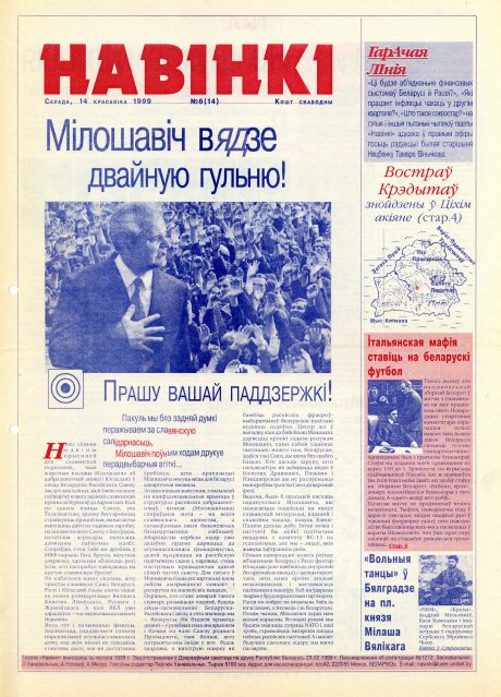«Наві́нкі» — беларуская палітыка-сатырычная газэта. Заснаваная напачатку 1998 актывістамі анархічнай групоўкі «Чырвоны Жонд». Стылістыка — жорсткі трэшавы сьцёб з палітычных рэаліяў, кліпавы мантаж, палітычная карыкатура на грані непрыстойнасьці, максымальна ангажаваная падача навінаў, сатырычныя коміксы, палітычныя і культуралягічныя правакацыі. За правобраз газэты была ўзятая газэта «Навіны», назва і лягатып якой былі нязначна зьменен... Болей »