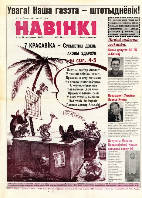 «Наві́нкі» — беларуская палітыка-сатырычная газэта. Заснаваная напачатку 1998 актывістамі анархічнай групоўкі «Чырвоны Жонд». Стылістыка — жорсткі трэшавы сьцёб з палітычных рэаліяў, кліпавы мантаж, палітычная карыкатура на грані непрыстойнасьці, максымальна ангажаваная падача навінаў, сатырычныя коміксы, палітычныя і культуралягічныя правакацыі. За правобраз газэты была ўзятая газэта «Навіны», назва і лягатып якой былі нязначна зьменен... Болей »