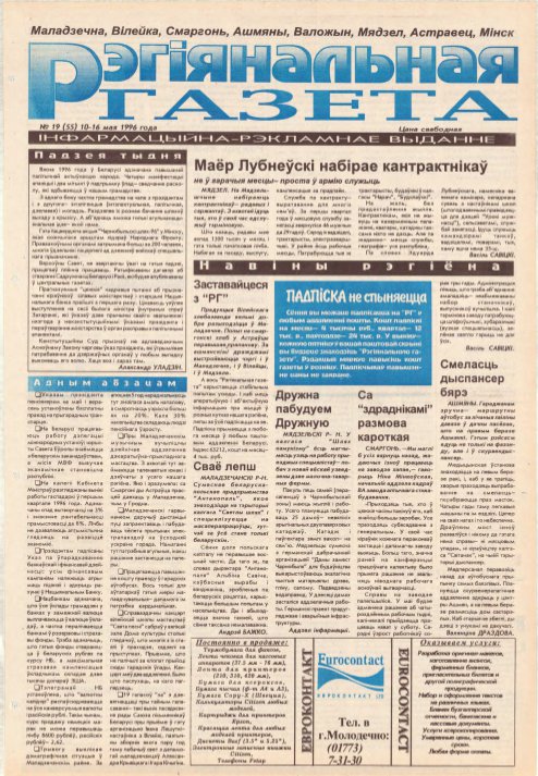 Выдавец: Таварыства з абмежаванай адказнасцю Рэдакцыя газеты Рэгіянальная газета
