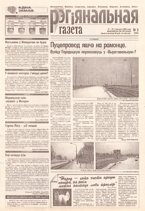 Выдавец: Таварыства з абмежаванай адказнасцю Рэдакцыя газеты Рэгіянальная газета