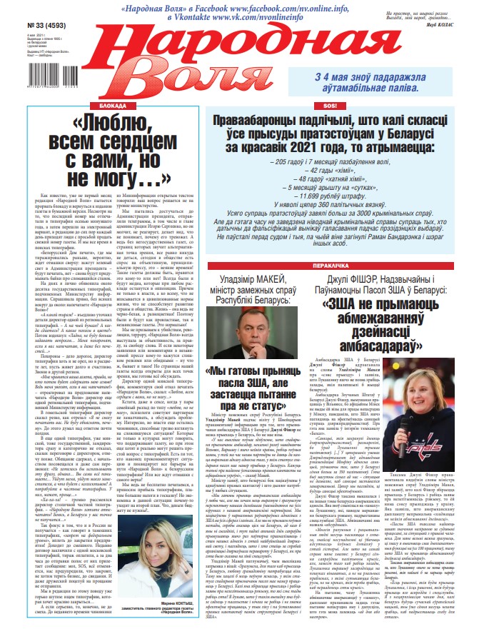 Амбасадарка ЗША ў Беларусі Джулі Фішэр адрэагавала на словы Уладзіміра Макея пра «сэнс прыезду» і заявіла, што Лукашэнку яшчэ не позна зрабіць захады, якія палепшылі б жыццё беларусаў. Амбасадарка Злучаных Штатаў у Беларусі Джулі Фішэр, вымушаная працаваць у Вільнюсе, бо афіцыйны Мінск не выдае ёй візы для працы непасрэдна ў Мінску, паведаміла, што ЗША яшчэ паглядзяць на эфектыўнасць санкцый супраць дзяржпрадпрыемстваў. Пра гэта яна заявіла ў інтэрв’ю тэлеканалу «Белсат». «Санкцыі, якія закранулі дзевяць дзяржпрадпрыемстваў, размарозілі, бо ўрад Лукашэнкі трымае палітвязняў. [...] У цяперашніх умовах Дзярждэпартамент даў адпаведныя рэкамендацыі Мінфіну адносна санкцый, улічваючы тое, што ў Беларусі сёння больш за 350 палітвязняў. Гэта быў магутны сігнал ад нас – сітуацыя не дазваляе, каб санкцыі заставаліся замарожанымі. Цяпер мы паглядзім, ці будуць санкцыі эфектыўнымі».
