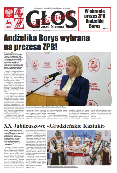 W Grodnie 20 marca obradował X Zjazd Związku Polaków na Białorusi. 135 delegatów, reprezentujących 112 struktur ZPB rozsianych po całej Białorusi, w tajnym głosowaniu wybrało na kolejną czteroletnią kadencję prezesa ZPB dotychczasową prezes Związku Polaków na Białorusi Andżelikę Borys. Delegaci X zjazdu wybrali też nowy skład Rady Naczelnej Związku Polaków na Białorusi, Komisję Kontrolno-Rewizyjną, przegłosowali dwie poprawki do Statutu ZPB i przyjęli Stanowisko X Zjazdu wobec bieżącej sytuacji mniejszości polskiej na Białorusi. Ze względu na trudną sytuację epidemiczną X Zjazd Związku Polaków na Białorusi odbył się za pośrednictwem łącz internetowych, które połączyły cztery ośrodki, zgromadzili się delegaci. Były to Grodno, Lida, Wołkowysk oraz Mińsk. Dzięki dobrodziejstwu Internetu na samym początku obrad delegatów X Zjazdu ZPB przywitał pełnomocnik Rządu RP do spraw Polonii i Polaków za Granicą Jan Dziedziczak. Minister wyraził podziw dla Związku Polaków na Białorusi i prezes organizacji Andżeliki Borys w związku z tym, że w niełatwych warunkach organizacja się rozwija i spełnia swoje zadania statutowe. Wystąpienie ministra Jana Dziedziczaka zostało odtworzone podczas Zjazdu z nagrania wcześniej otrzymanego z Kancelarii Prezesa Rady Ministrów RP.
