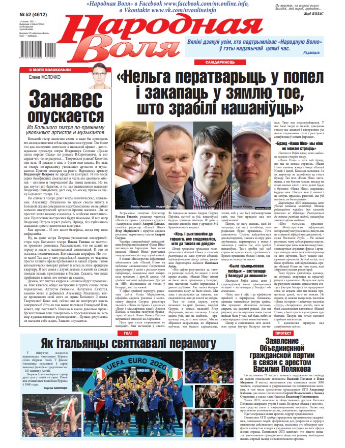 Большой театр закончил сезон, и надо бы проводить его аплодисментами и благодарностями труппе. Тем более что два последних спектакля в июльской афише – долгожданная премьера оперы Владимира Солтана «Дикая охота короля Стаха» по роману В. Короткевича. А вот сердце что-то не радуется… Творческие успехи? Конечно, они есть. И писали о них, и будем еще писать. Но ведь из театра по-прежнему увольняют артистов и музыкантов. Причем невзирая на ранги. Народному артисту Владимиру Петрову не продлили контракт. И это после серии бенефисных спектаклей в честь его двойного юбилея – личного и творческого! Да, певец немолод. Но то, как звучит его баритон, и то, как великолепно выглядит Владимир Геннадьевич, дает ему, по-моему, право на сцену Большого театра. Но…Но сейчас в театре дуют ветра политические, шквальные. Александр Лукашенко во время своего визита в Большой сказал совершенно недвусмысленно: он не забыл осенних выступлений артистов против насилия. Он не простит этого никому и никогда. А особенно интеллигенции. Протестные настроения будут наказаны. И вот мэтр Владимир Петров теряет работу. Правда, без публичного скандала: просто закончился контракт. Как просто… И это после бенефиса, когда ему пели дифирамбы.