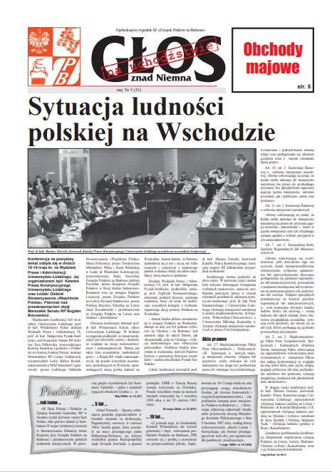 Konferencja na powyższy temat odbyła się w dniach 18-19 maja br. na Wydziale Prawa i Administracji Uniwersytetu Łódzkiego. Jej organizatorami byli: Katedra Prawa Konstytucyjnego Uniwersytetu Łódzkiego oraz Łódzki Oddział Stowarzyszenia «Wspólnota Polska». Patronat nad przedsięwzięciem objął Marszałek Senatu RP Bogdan Borusewicz. Słuchaczami konferencji byli m.in. rektor Uniwersytetu Łódzkiego prof. dr hab. Włodzimierz Nykel, dziekan Wydziału Prawa i Administracji UŁ prof. dr hab. Małgorzata Pyziak-Szafnicka, szef Kancelarii Senatu RP minister Ewa Polkowska, przewodniczący Komisji Senackiej Łączności z Polakami za Granicą Andrzej Person, minister Infrastruktury RP Cezary Grabarczyk, wiceprezydent Łodzi Halina Rosiak, radca ministra w MSZ Stanisław Cygnarowski, prezes Łódzkiego Oddziału Stowarzyszenia «Wspólnota Polska» Maria Piotrowicz, prezes Towarzystwa Miłośników Wilna i Ziemi Wileńskiej w Łodzi dr Władysław Korowajczyk, przewodniczący Rady Naczelnej Związku Polaków na Białorusi Andrzej Poczobut, prezes Kongresu Związku Polaków w Rosji Halina Subotowicz Romanow oraz jej zastępca Sergiusz Leończyk, prezes Związku Polaków na Łotwie Ryszard Stankiewicz, prezes Polskiej Macierzy Szkolnej na Litwie Józef Kwiatkowski i przedstawiciele ze Związku Polaków na Litwie oraz studenci i dziennikarze.