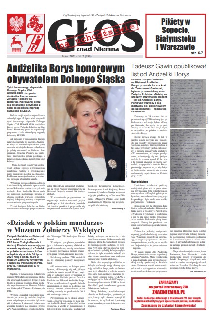 Tytuł honorowego obywatela Dolnego Śląska CIVI HONORARIO otrzymała Andżelika Borys, prezes Związku Polaków na Białorusi. Kierowanej przez nią organizacji przyznano z kolei dolnośląską nagrodę kulturalną SILESIA. Podczas sesji sejmiku województwa dolnośląskiego 15 lipca radni przyznali tytuł honorowego obywatela Dolnego Śląska CIVI HONORARIO Andżelice Borys, prezes Związku Polaków na Białorusi. Kierowanej przez nią organizacji przyznano z kolei dolnośląską nagrodę kulturalną SILESIA. Jak napisano w uzasadnieniu decyzji radnych i kapituły tej nagrody, Andżelika Borys od kilkudziesięciu lat nie tylko umacnia, ale niejednokrotnie odbudowuje polską tożsamość na Białorusi. Jest prezesem Związku Polaków na Białorusi, nauczycielką języka polskiego i krzewicielką polskiego patriotyzmu oraz kultury. – Mimo licznych i niezwykle dotkliwych szykan, represji i prześladowań niezłomnie walczy o przestrzeganie praw mniejszości polskiej na Białorusi. Pod koniec marca pozbawiono ją wolności, stawiając absurdalne zarzuty. Wykazując się niecodzienną odwagą i niezłomnością, odmówiła opuszczenia terenu Białorusi w zamian za odzyskanie wolności. Pani Andżelika Borys stała się symbolem niezłomnego trwania w obronie polskich wartości, symbolem mądrej, pokojowej postawy – napisano w uzasadnieniu przyznania tytułu.