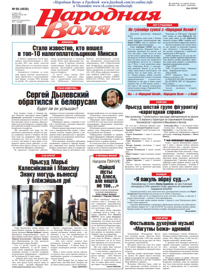 Шаноўныя прыхільнікі «Народнай Волі»! Мы разумеем, якую ролю ў Вашым жыцці адыгрывае незаангажаванае свабоднае СЛОВА, якое не прайшло праз абмежаванні жорсткай цэнзуры. Такое свабоднае СЛОВА вось ужо 27-ы год даносіць «Народная Воля». І рэдакцыя прыкладае ўсе высілкі для таго, каб наша і ваша газета як мага хутчэй змагла друкавацца на паперы і даходзіць да чытачоў у ранейшым варыянце. На жаль, пакуль нам адмоўлена ў паліграфічных паслугах як у Беларусі, так і ў Расіі. А таму працягваем выдаваць «Народную Волю» ў электронным варыянце. Вядома ж, не ўсе Вы, сябры, карыстаецеся камп’ютарам. Але выйсце ёсць: не можа быць, каб нехта з Вашых родных, сяброў, суседзяў, саслужыўцаў не быў у ладах з сучаснымі інфармацыйнымі тэх на логі ямі. Папрасіце іх, каб яны за Вашы сродкі падпісалі Вас на PDF-версію газеты, і ўжо праз іх Вы зможаце атрымліваць самыя свежыя нумары «Народнай Волі» ў раздрукаваным выглядзе. Падпісацца на PDF-версію «Народнай Волі» можна на сайце belpressa.by. Для гэтага трэба зайсці на сайт belpressa.by, націснуть ўкладку «2021» і выбраць месяцы, на якія вы будзете афармляць падпіску.