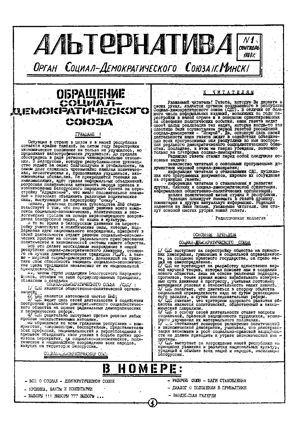 Уважаемый читатель! Газета, которую Вы держите в своих руках, является органом создаваемого в республике Социал-демократического союза (СДС). В отличии от большого числа неформальных изданий, вознйших за годы перестройки в нашей стране и в основном ориентированных на освещение политических событий, наша газета видит своей целью реализацию тех задач, которые когда-то так блестяще были осуществлены первой газетой российской социал-демокра... More »