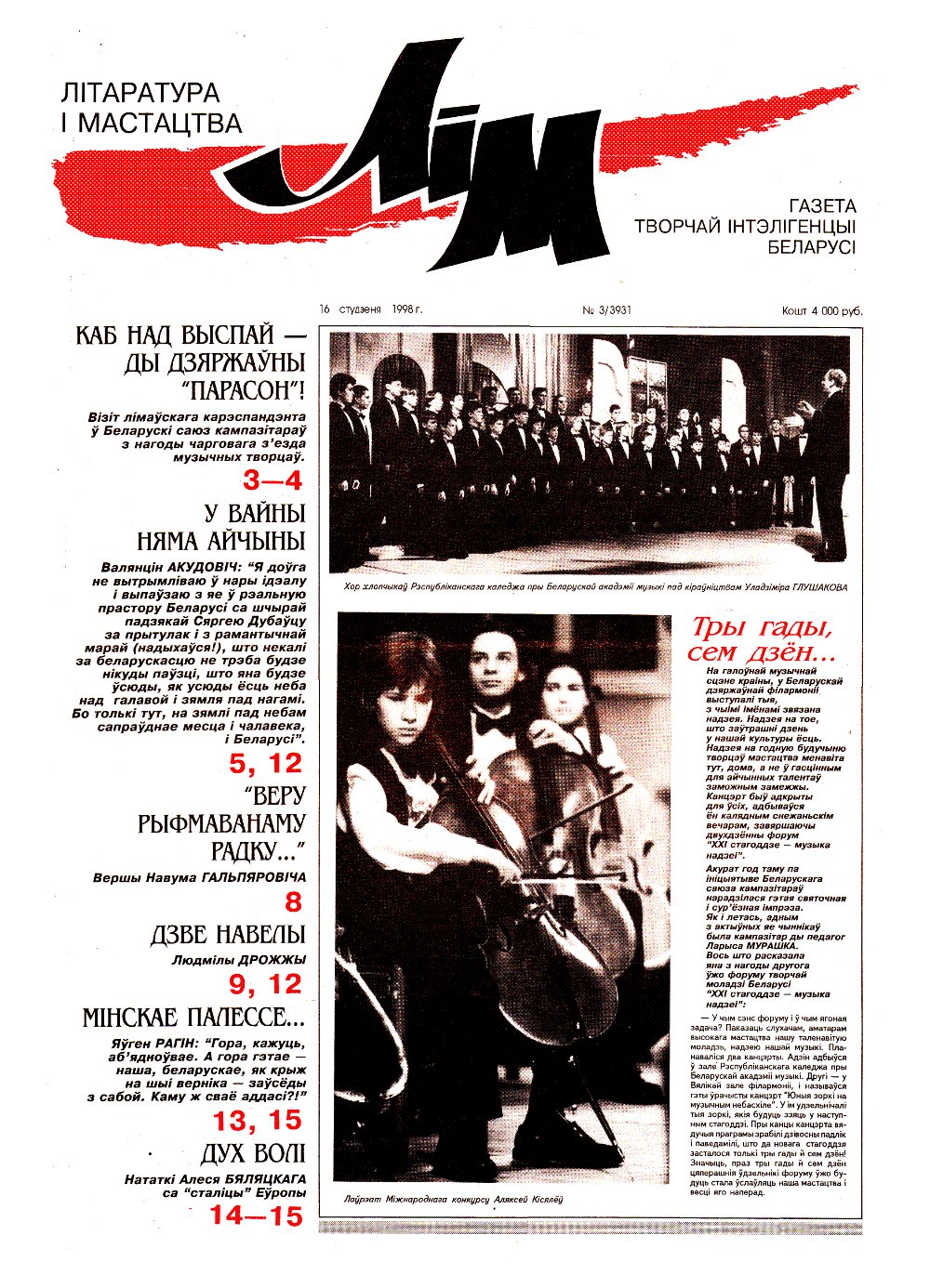 Выдавец: Саюз беларускіх пісьменнікаў, рэдакцыя газеты „Літаратура і мастацтва”