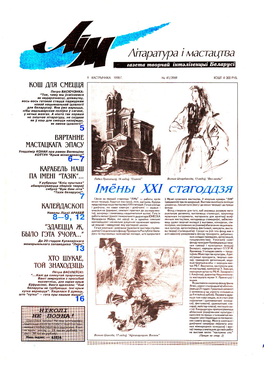 Выдавец: Саюз беларускіх пісьменнікаў, рэдакцыя газеты „Літаратура і мастацтва”