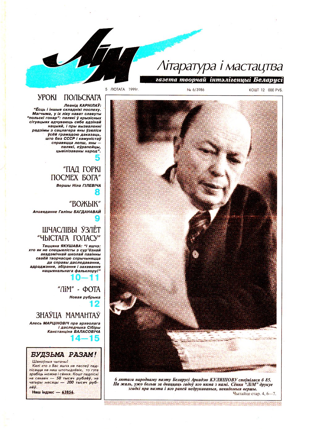 Выдавец: Саюз беларускіх пісьменнікаў, рэдакцыя газеты „Літаратура і мастацтва”