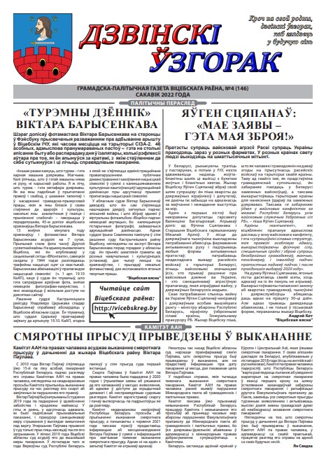 Старшыня Віцебскага райвыканкама Генадзь Сабыніч расказаў аб асаблівасцях цяперашняй гарачай пары. Дваццаць шосты год не перарываецца традыцыя ўдзелу Віцебскага раёна ў фестывалях-кірмашах працаўнікоў вёскі "Дажынкі" рэспубліканскага і абласнога ўзроўняў. Пастаянна з 1996 года аграрыі Прыдзвінскага краю станавіліся пераможцамі ў розных намінацыях маштабнага сельскагаспадарчага форуму. Апошніх некалькі гадоў раён утрымлівае лідэрства ў а... Болей »