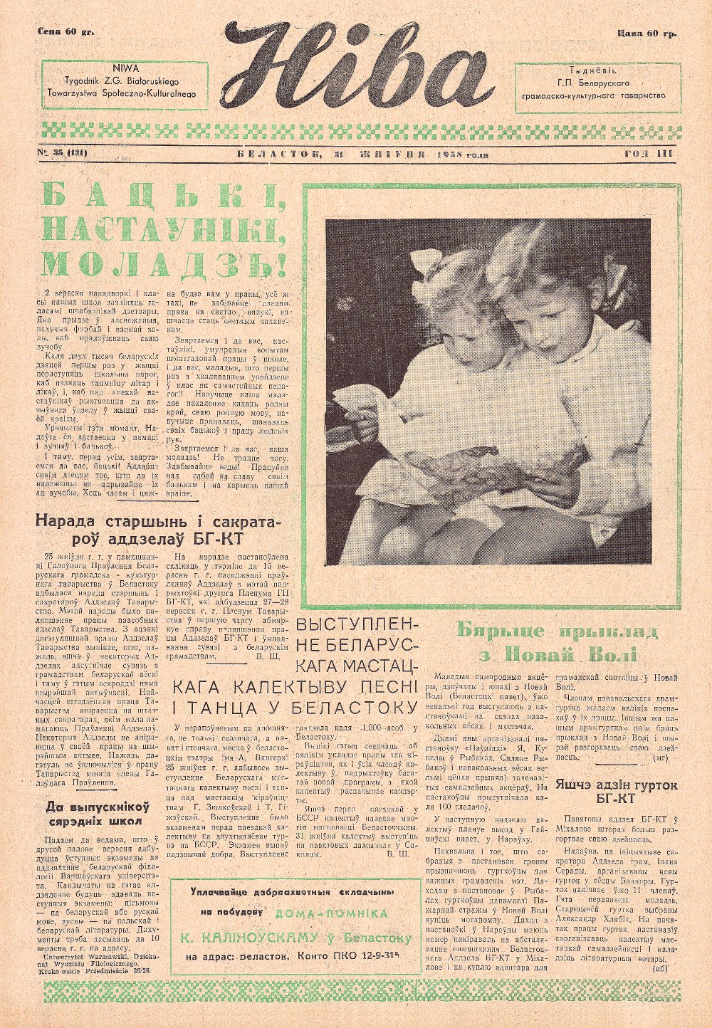 «Ніва» — штотыднёвая газета, якая выдаецца на беларускай мове ў Беластоку. Газета была заснавана ў 1956 Беларускім грамадска-культурным таварыствам. Зараз яе выдае Праграмная рада тыднёвіка «Ніва». Газета асвятляе штодзённае жыццё беларусаў у Польшчы, дзейнасць грамадскіх арганізацый, друкуе матэрыялы па краязнаўстве, змяшчае артыкулы, прысвечаныя актуальным падзеям на Беларусі. Болей »