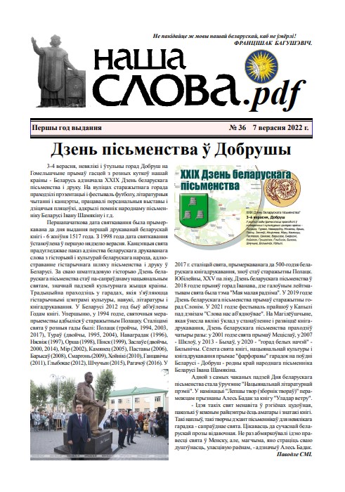 3-4 верасня, невялікі і ўтульны горад Добруш на Гомельшчыне прымаў гасцей з розных куткоў нашай краіны - Беларусь адзначала ХХІХ Дзень беларускага пісьменства і друку. На вуліцах старажытнага горада праходзілі прэзентацыі і фестываль футболу, літаратурныя чытанні і канцэрты, працавалі персанальныя выставы і дзіцячыя пляцоўкі, адкрылі помнік народнаму пісьменніку Беларусі Івану Шамякіну і г.д. Першапачаткова дата святкавання была прымеркавана да дня выдання першай друкаванай беларускай кнігі - 6 жніўня 1517 года. З 1998 года дата святкавання ўстаноўлена ў першую нядзелю верасня. Канцэпцыя свята прадугледжвае паказ адзінства беларускага друкаванага слова з гісторыяй і культурай беларускага народа, адлюстраванне гістарычнага шляху пісьменства і друку ў Беларусі. За сваю шматгадовую гісторыю Дзень беларускага пісьменства стаў па-сапраўднаму нацыянальным святам, значнай падзеяй культурнага жыцця краіны. Традыцыйна праходзіць у гарадах, якія з'яўляюцца гістарычнымі цэнтрамі культуры, навукі, літаратуры і кнігадрукавання. У Беларусі 2012 год быў аб'яўлены Годам кнігі.