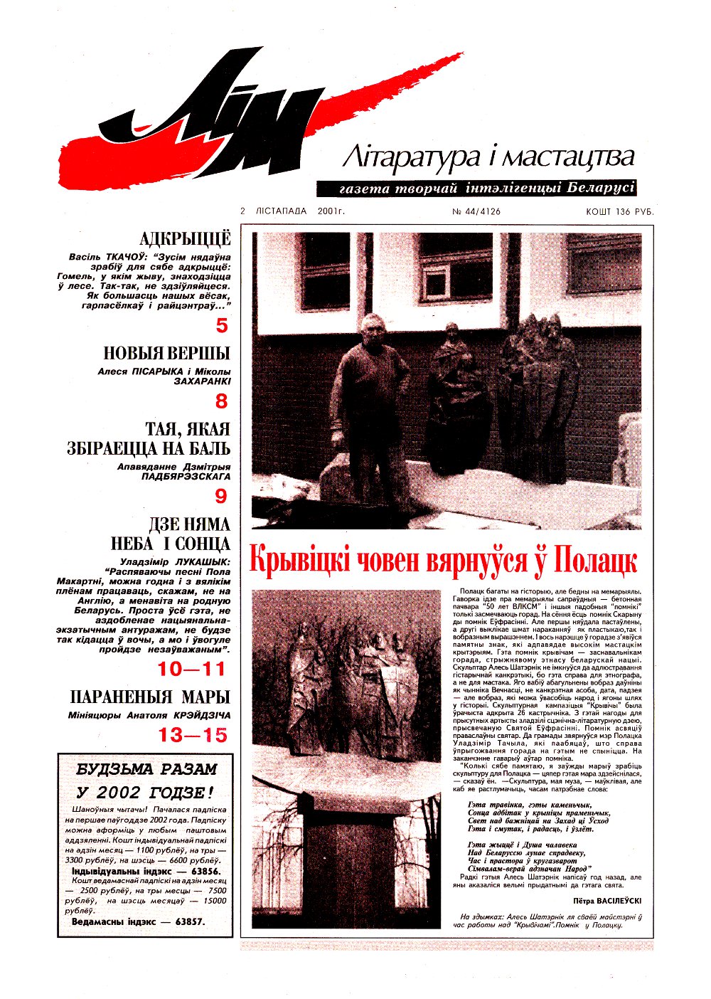 Выдавец: Саюз пісьменнікаў Беларусі, рэдакцыя газеты «Літаратура і мастацтва»