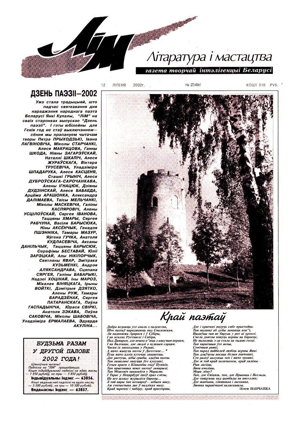 Рэдакцыйная калегія: Барабаншчыкава Вольга, Берасцень Святлана, Гаўрон Алесь, Марук Уладзімір, Рагін Яўген, Рублеўская Людміла, Шніп Віктар